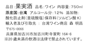 このワインは、リーファーコンテナ、ならびに、冷蔵トラック、定温管理倉庫などを使用し、台湾のワイナリー出荷から、日本の当店到着まで、出入庫作業のための短時間を除き、13℃~15℃の温度帯に管理された状態で定温輸入しております。