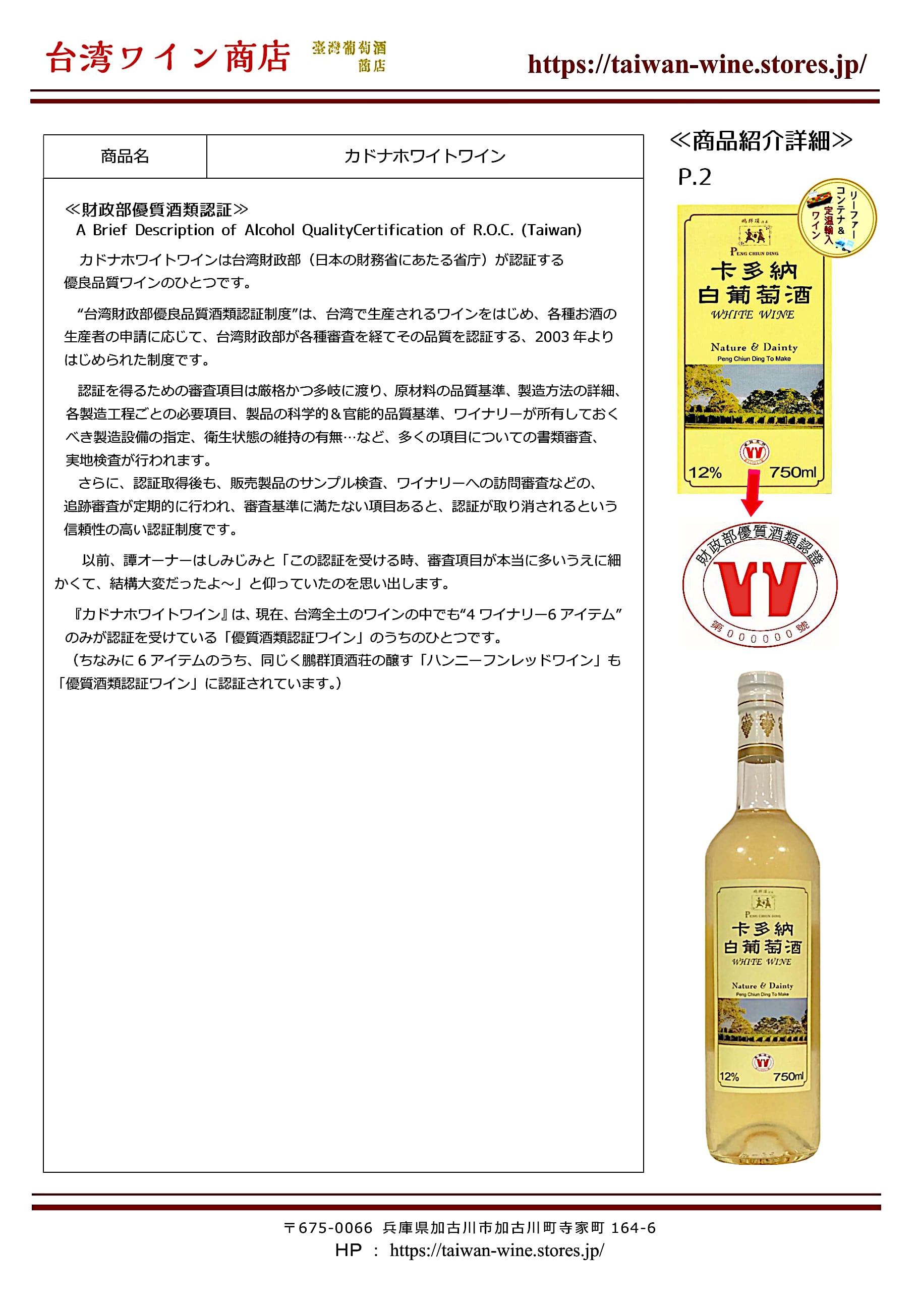 オンリーワンな白ワイン『カドナホワイトワイン』